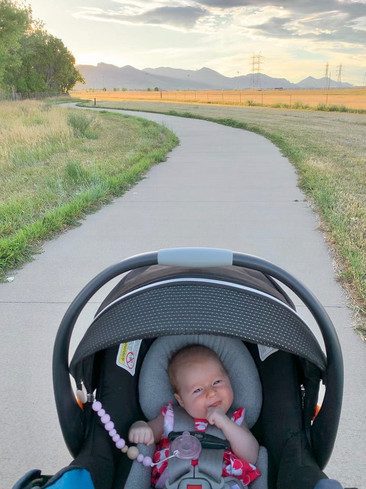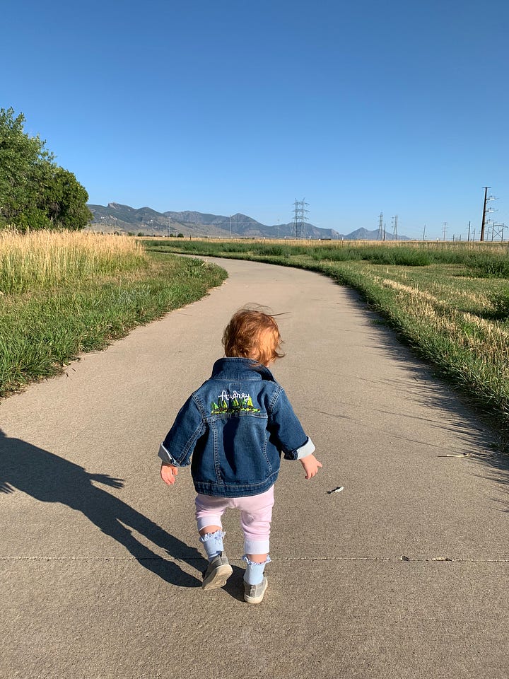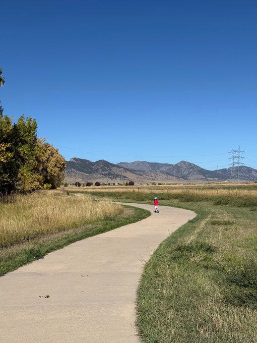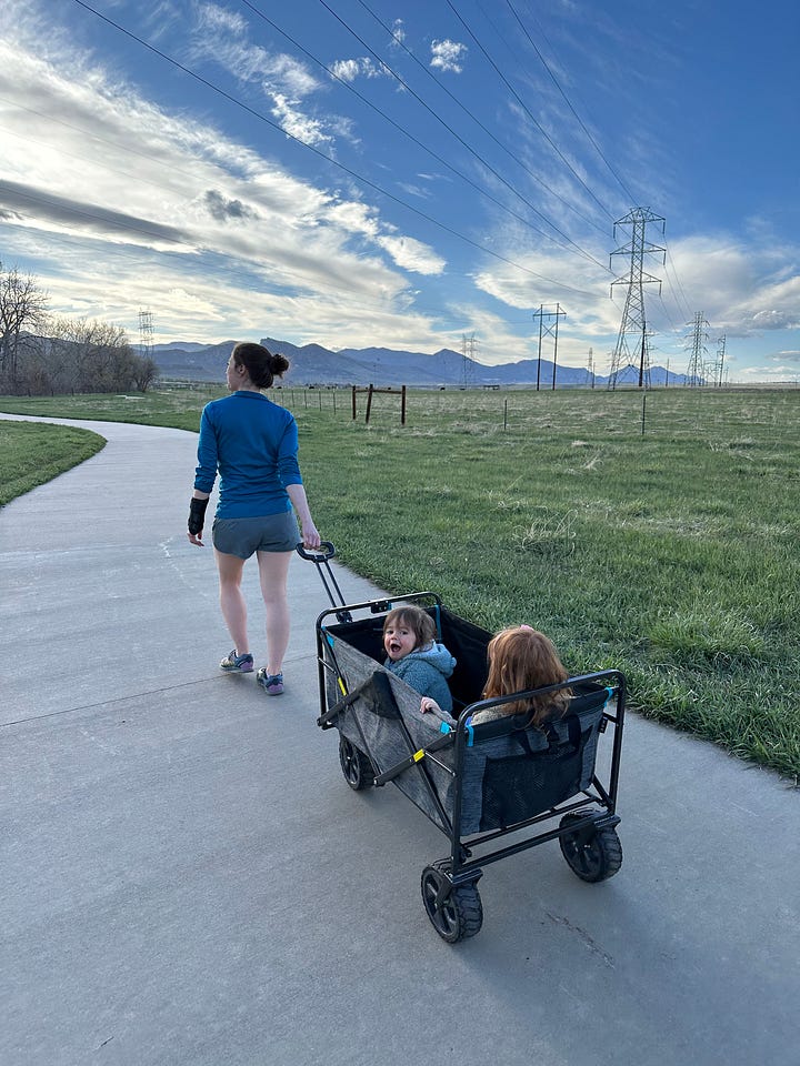 When we started on these walks the kids were in strollers. Before long they were tottering and babbling at the cows and horses. Now they speed ahead on their scooters. I try to hold the moments, to memorize them, but they evaporate so quickly.